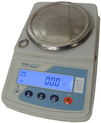 3. Тарировать весы с пустым большим стаканом и гирькой внутри