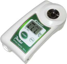 Измерение %СВ выполняется непосредственно рефрактометром до появления кристаллов, и с разбавлением 1:1 после их появления (инструкция к ручному рефрактометру ATAGO, инструкция к лабораторному рефрактометру РПЛ)