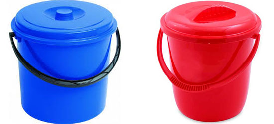 Відра з чистою гарячою та дистильованою водою, накриті кришками