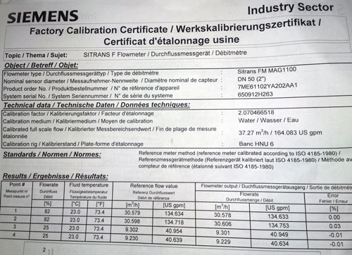 - Serial No 650912H263 расход возврата суспензии сока 1 сатурации на ПД 3а,б - 0..20 м3/час